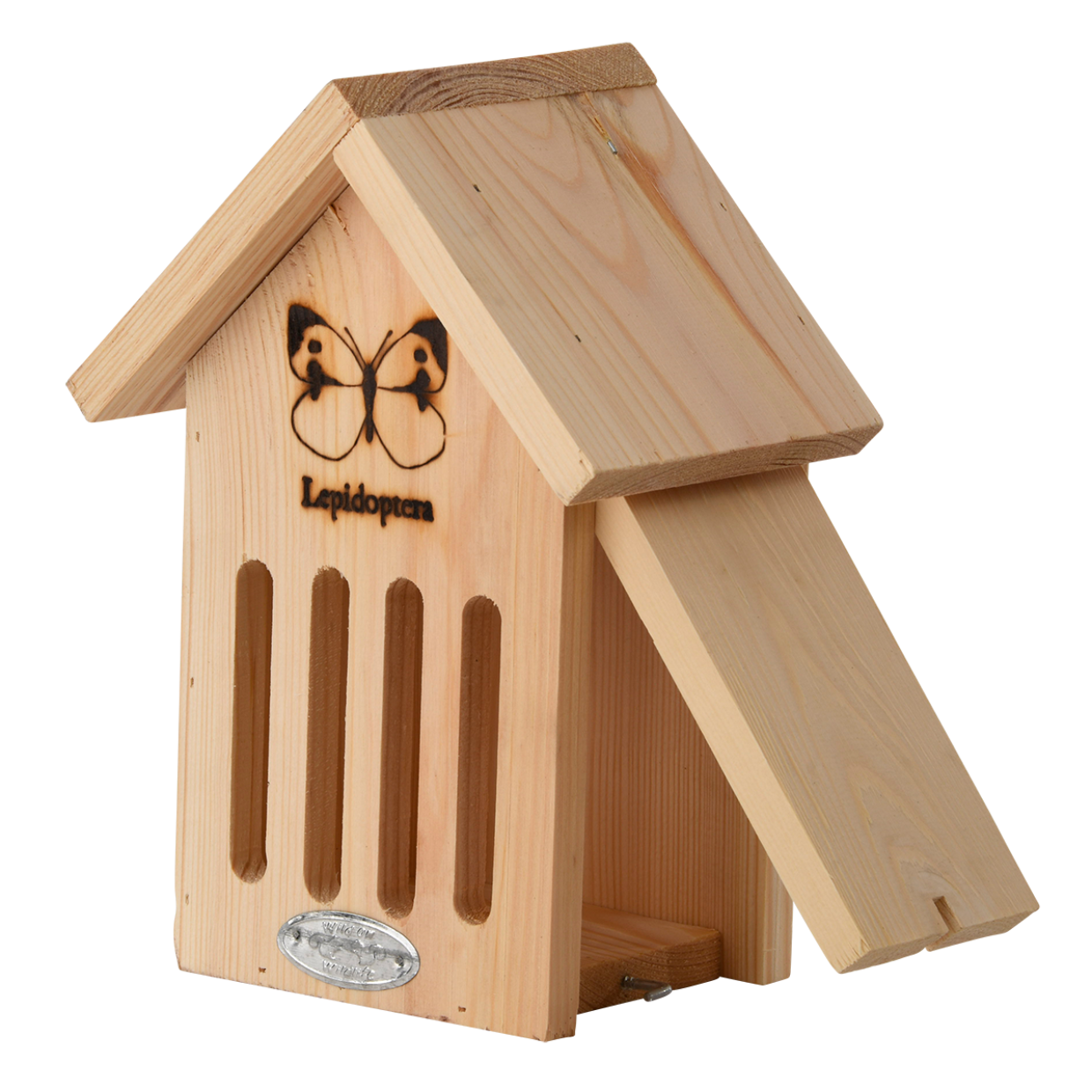 Les papillons comptent parmi les insectes les plus utiles de notre jardin. La silhouette avec le nom latin dit tout: cet abri est tout spécialement adapté à ces insectes colorés. Il leur apporte un abri idéal pendant les journées humides et froides. La volet latéral permet de nettoyer très facilement l’abri et d’y intégrer des brindilles.
